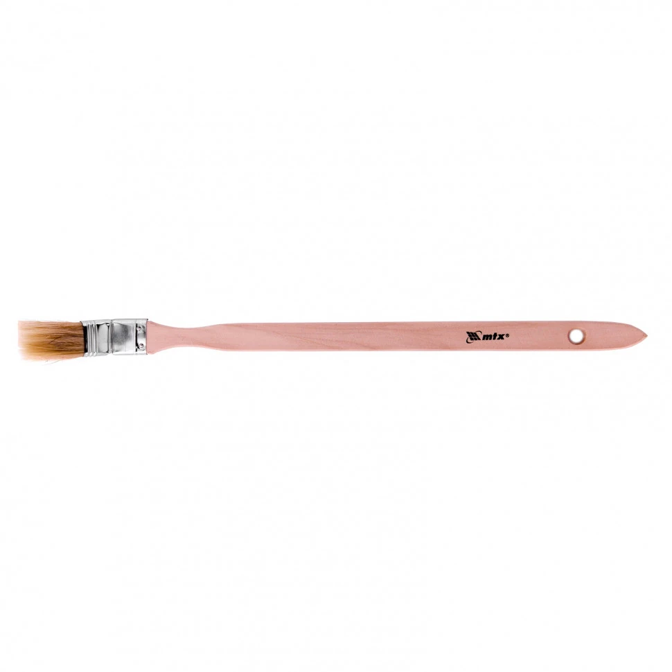 Радиаторная кисть MTX 83840 шириной 1 дюйм, с натуральной щетиной и деревянной ручкой, используется для окрашивания радиаторов водяного отопления, металлических проволочных конструкций, труб, а также углов и стыков стен. Решение этих задач облегчает удлиненная ручка изогнутой формы. Натуральная щетина устойчива к агрессивным средам, поэтому кисть применяется с эмалями и масляными красками.Преимущества:Кисть хорошо удерживает краску, а финишный слой получается ровным и гладким.Щетина не выпадет даже при интенсивном использовании, т.к. она надежно закреплена клеем, клиньями и металлическим бандажом.Кисть поглощает и распределяет большой объем ЛКМ, поскольку щетинки расщеплены на концах.Инструмент можно замачивать — антикоррозийное покрытие защищает бандаж от ржавчины.Кистью комфортно работать — рукоятка изготовлена из отборной древесины, поэтому не скользит в руке.Практичность — отверстие в рукоятке служит для подвешивания и облегчает хранение.