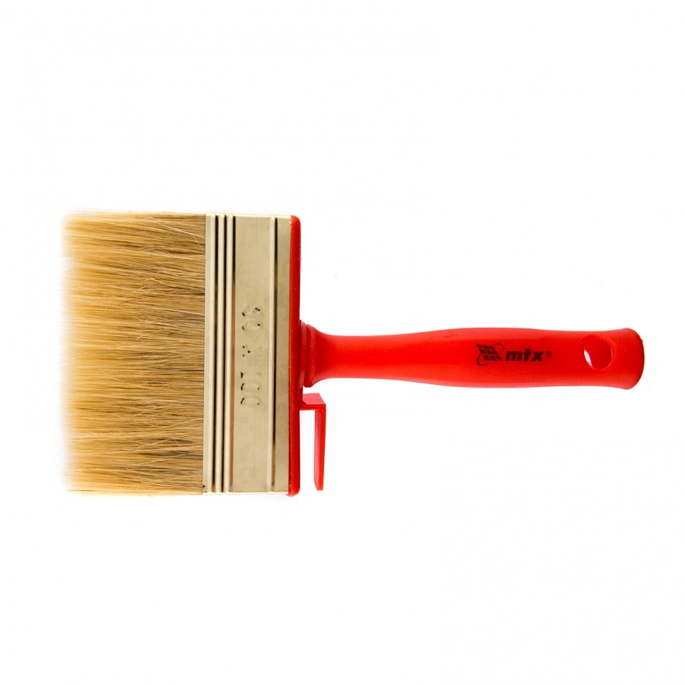 Кисть-ракля MTX 84121, 30 х 100 мм, с натуральной щетиной, пластмассовыми корпусом и ручкой, используется для малярных работ на участках большой площади, поэтому удобна для обработки стен, потолков и фасадов. Натуральная щетина устойчива к химическому воздействию, поэтому не деформируется и сохраняет упругость при работе с ЛКМ на водной основе, грунтовками, масляными красками и клеящими составами.ПреимуществаРасщепленная на концах щетина обладает повышенной способностью набирать, удерживать и распределять по поверхности лакокрасочные материалы.ЛКМ наносится ровно, так как кисть изготовлена с использованием натуральной щетины двойной выварки.Инструмент отвечает всем требованиям проведения малярных работ и прослужит долго — щетина устойчива к износу, а металлический бандаж имеет антикоррозийное покрытие и не ржавеет при контакте с ЛКМ и водой.Утолщенная рукоятка обеспечивает удобный захват и позволяет долго работать без усталости.Во время перерыва да кисть можно закрепить на краю емкости с краской при помощи пр