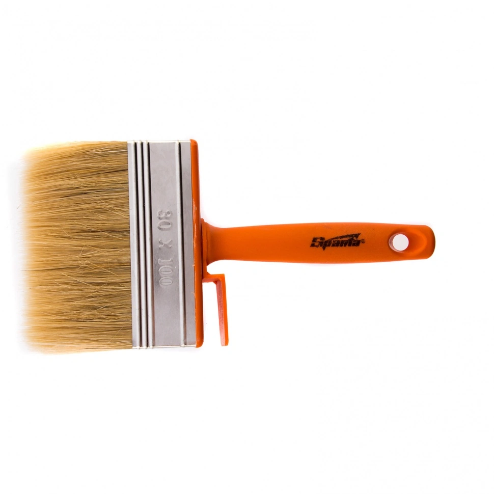 Кисть-ракля Sparta 841025, 30 х 100 мм, с натуральной щетиной, пластмассовыми корпусом и ручкой, используется для малярных работ на участках большой площади, поэтому удобна для обработки стен, потолков и фасадов. Натуральная щетина устойчива к химическому воздействию, поэтому не деформируется и сохраняет упругость при работе с ЛКМ на водной основе, грунтовками, масляными красками и клеящими составами.ПреимуществаРасщепленная на концах щетина обладает повышенной способностью набирать, удерживать и распределять по поверхности лакокрасочные материалы.ЛКМ наносится ровно, так как кисть изготовлена с использованием натуральной щетины двойной выварки.Инструмент отвечает всем требованиям проведения малярных работ и прослужит долго — щетина устойчива к износу, а металлический бандаж имеет антикоррозийное покрытие и не ржавеет при контакте с ЛКМ и водой.Утолщенная рукоятка обеспечивает удобный захват и позволяет долго работать без усталости.Во время перерыва да кисть можно закрепить на краю емкости с краской при помощ