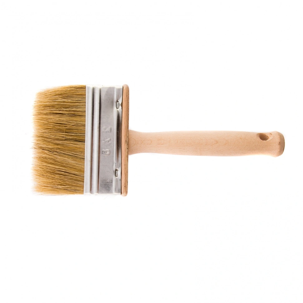 Кисть-ракля 84072, 30 х 90 мм, с натуральной щетиной, деревянными корпусом и ручкой, служит для нанесения лакокрасочных материалов на поверхности большой площади. Может использоваться для обработки фасадов, стен и потолков. Натуральная щетина с добавлением искусственного ворса не деформируется при работе с водно-дисперсионными красками и устойчива к растворителям. Поэтому кисть может применяться с ЛКМ на водной основе, масляными красками, лаками, а также клеящими составами.ПреимуществаНатуральная светлая щетина двойной выварки обладает хорошей краскоотдачей и износоустойчивостью, обеспечивая равномерное распределение краски по поверхности.Свиная щетина обладает высокой износостойкостью, что продлевает срок службы кисти.Щетина с расщепленными кончиками способна удерживать и отдавать большой объем краски, равномерно распределяя ее по поверхности — это повышает качество работы, экономит расход ЛКМ и время мастера.Металлический бандаж защищен от ржавчины антикоррозийным покрытием, поэтому кисть выдерживает замачи