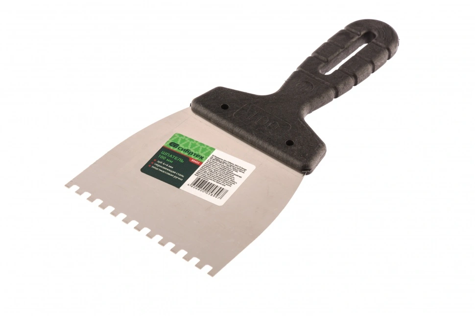 Шпатель из нержавеющей стали, 100 мм, зуб 4 х 4 мм, пластмассовая ручка Сибртех [1 шт]