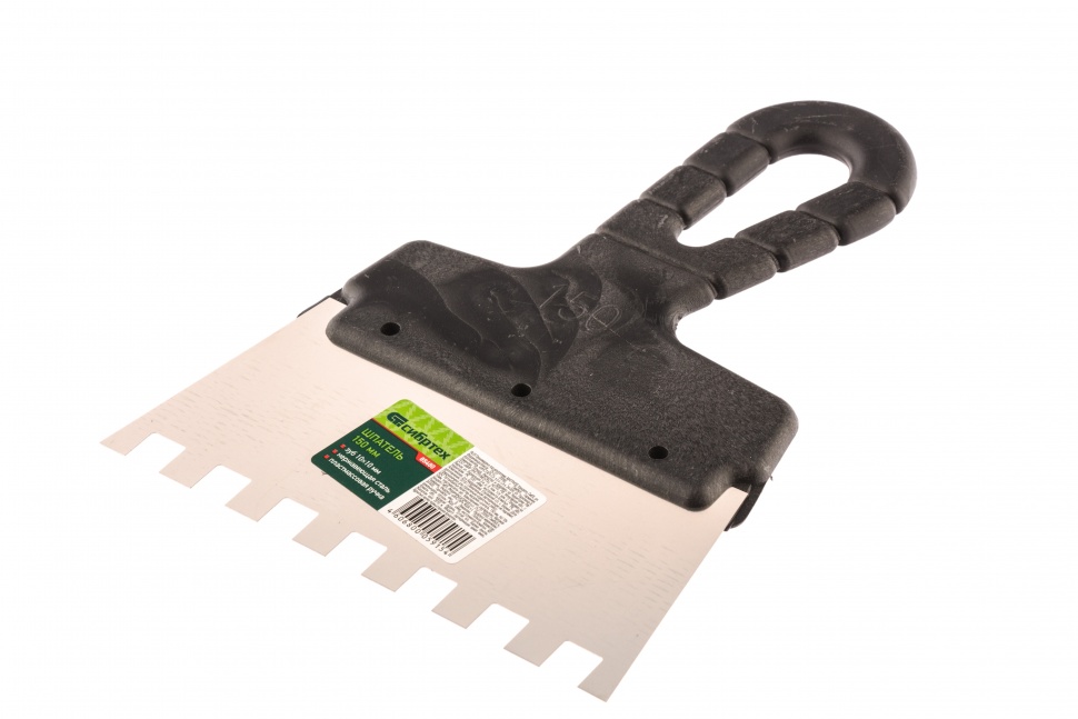 Шпатель из нержавеющей стали, 150 мм, зуб 10 х 10 мм, пластмассовая ручка Сибртех [1 шт]