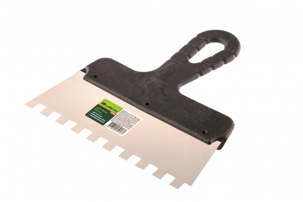 Шпатель из нержавеющей стали, 200 мм, зуб 10 х 10 мм, пластмассовая ручка Сибртех [1 шт]
