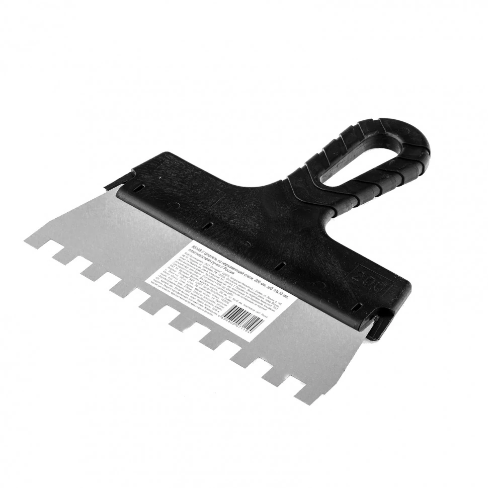 Шпатель из нержавеющей стали, 200 мм, зуб 10 х 10 мм, пластмассовая ручка Sparta [1 шт]