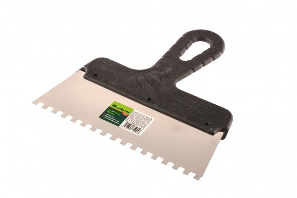Шпатель из нержавеющей стали, 200 мм, зуб 6 х 6 мм, пластмассовая ручка Сибртех [1 шт]