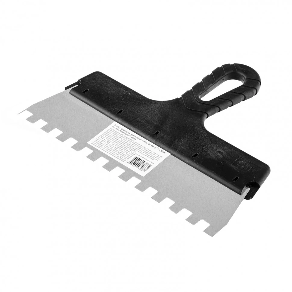 Шпатель из нержавеющей стали, 250 мм, зуб 10 х 10 мм, пластмассовая ручка Sparta [1 шт]