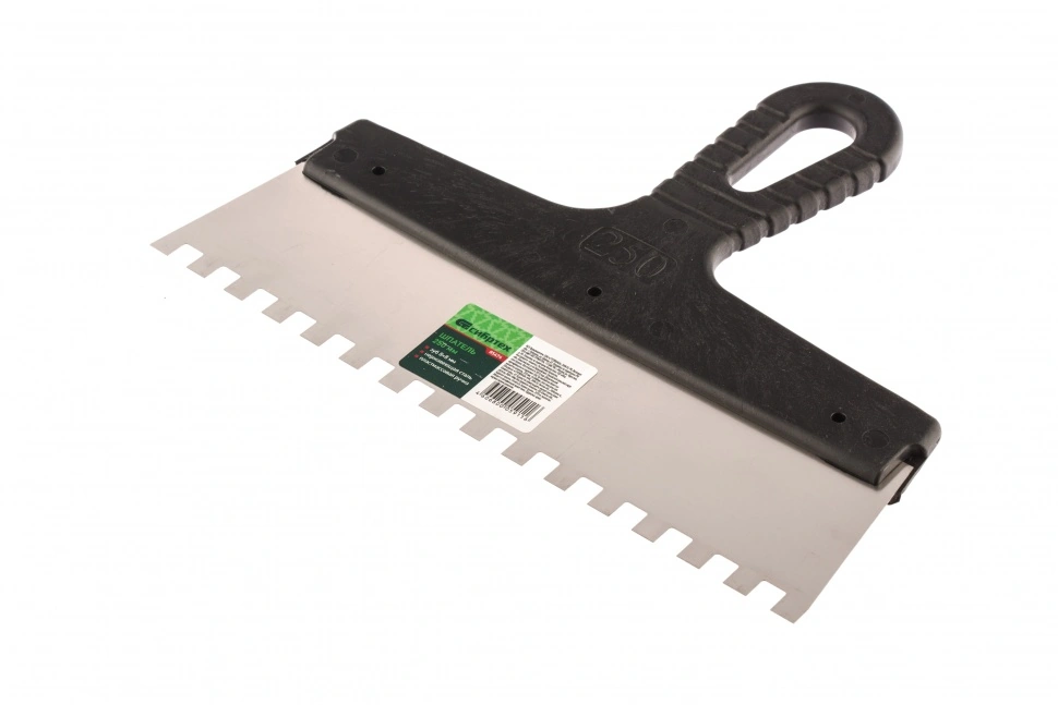 Шпатель из нержавеющей стали, 250 мм, зуб 8 х 8 мм, пластмассовая ручка Сибртех [1 шт]