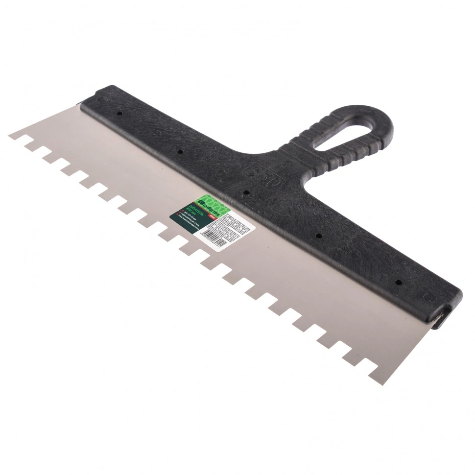 Шпатель из нержавеющей стали, 350 мм, зуб 10 х 10 мм, пластмассовая ручка Сибртех [1 шт]