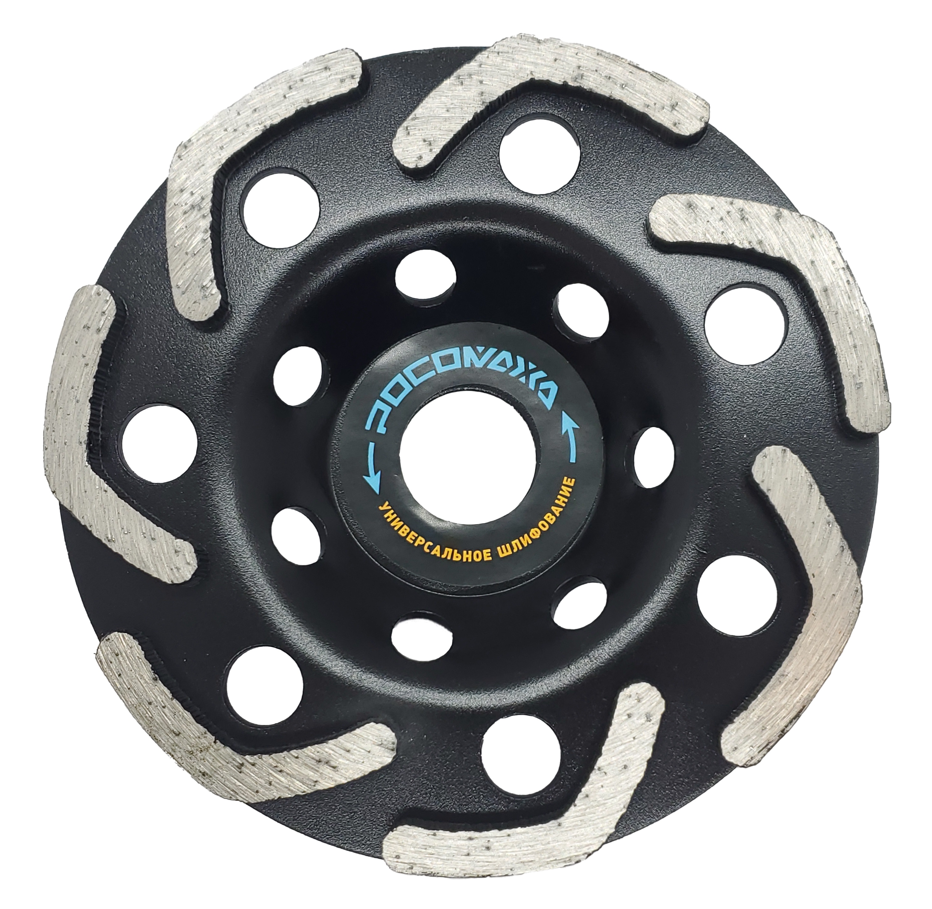 Алмазная чашка "РОСОМАХА" применяется для зачистки, выравнивания, снятия краски и шлифования поверхностей из бетона, гранита, природного и исскуственного камня.
