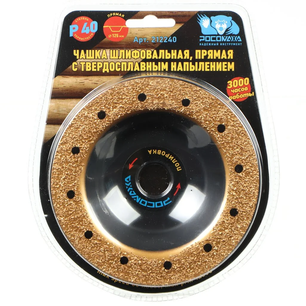 Чашка шлифовальная, прямая с твердосплавным напылением 125 мм зерно 40 "РОСОМАХА" [1 шт]