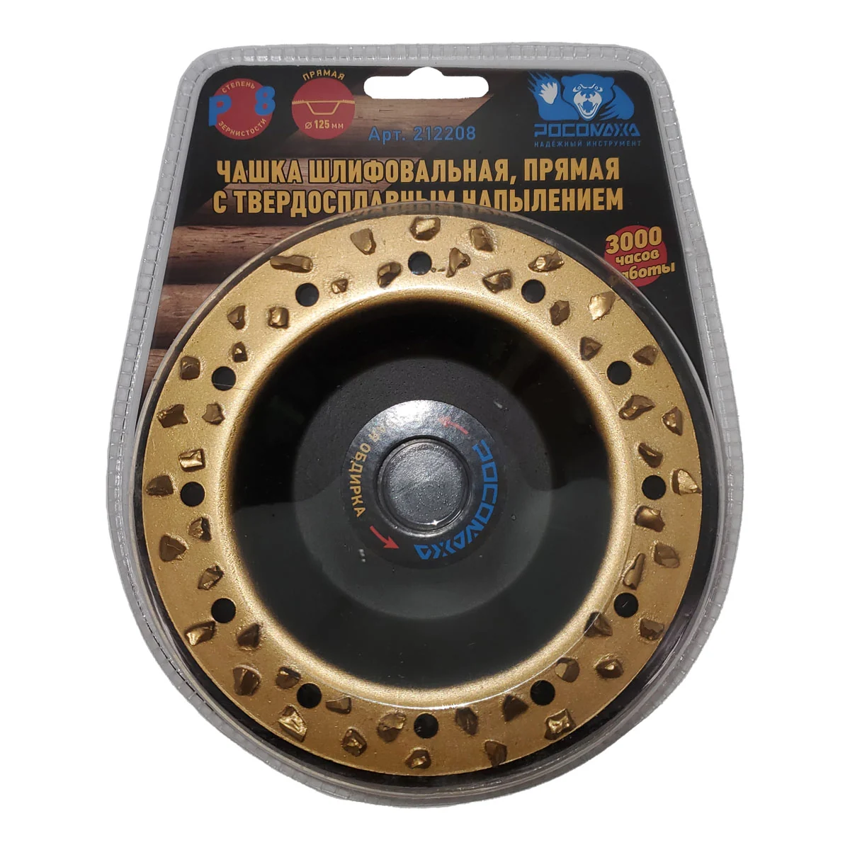 Чашка шлифовальная, прямая с твердосплавным напылением 125 мм зерно 8 "РОСОМАХА" [1 шт]