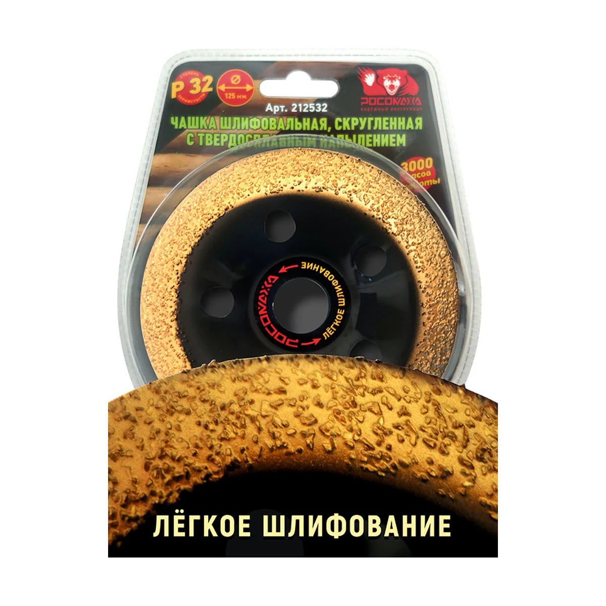 Чашка шлифовальная, скругленная с твердосплавным напылением 125 мм зерно 32 "РОСОМАХА" [1 шт]