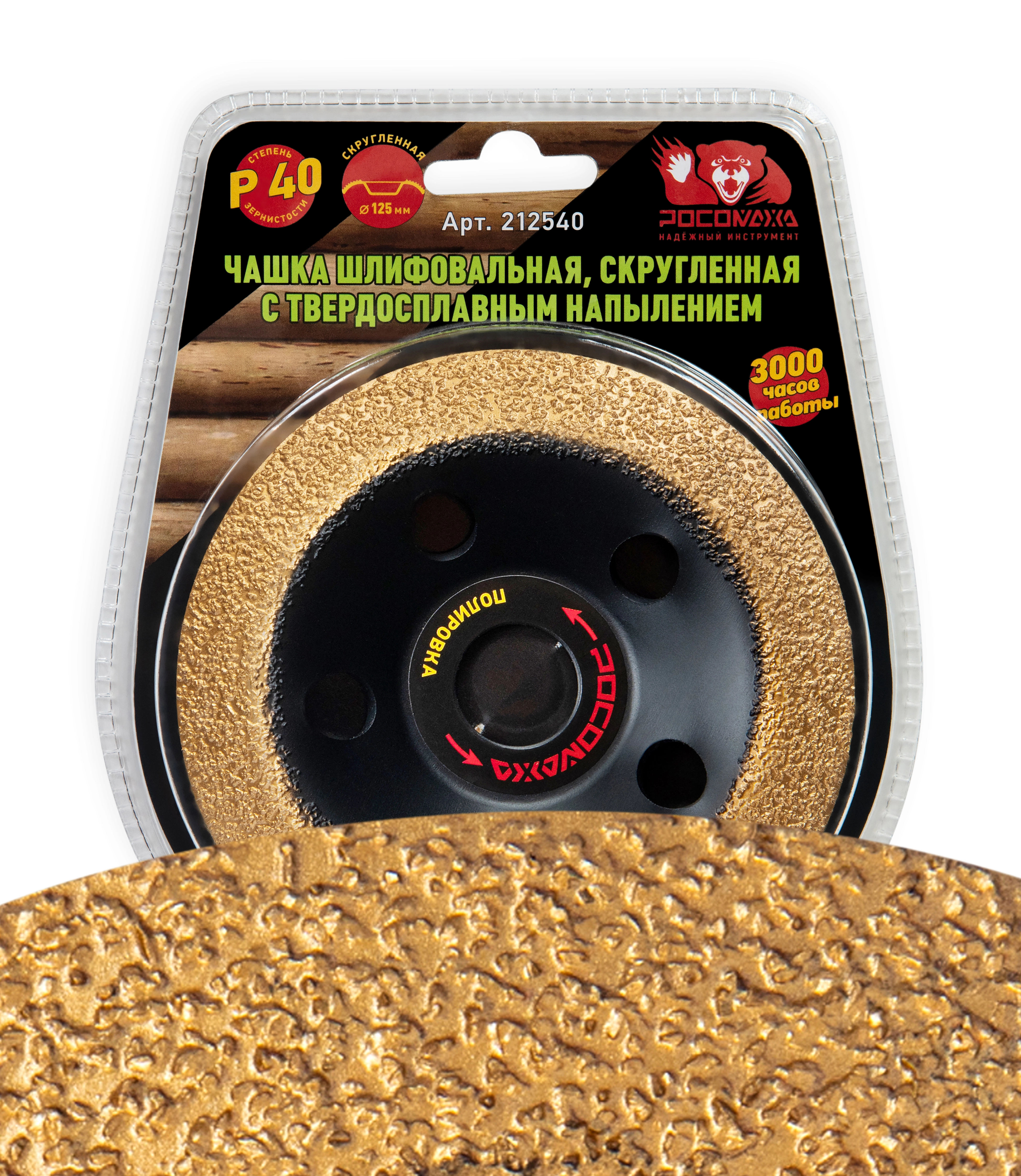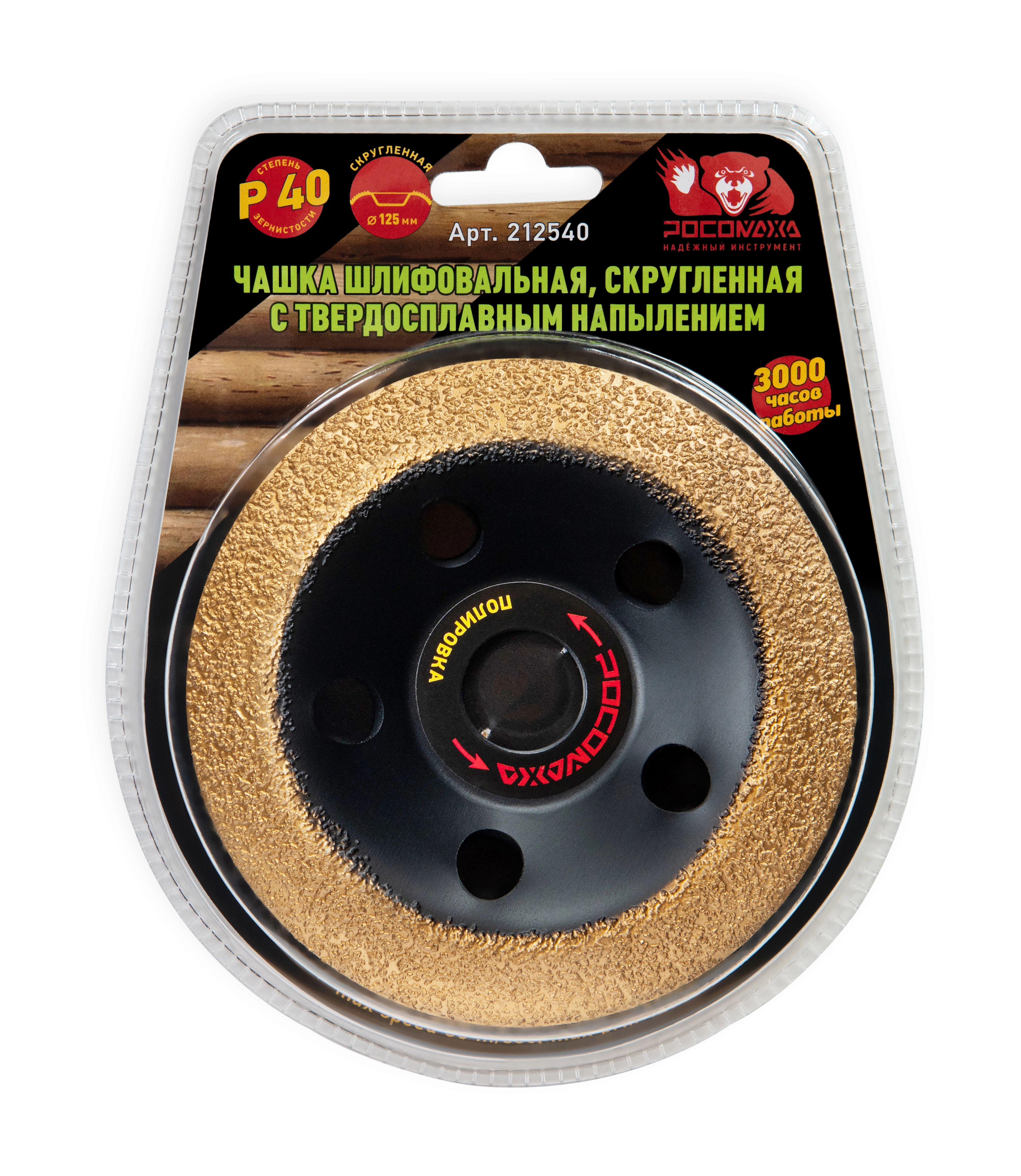 Чашка шлифовальная, скругленная с твердосплавным напылением 125 мм зерно 40 "РОСОМАХА" [1 шт]
