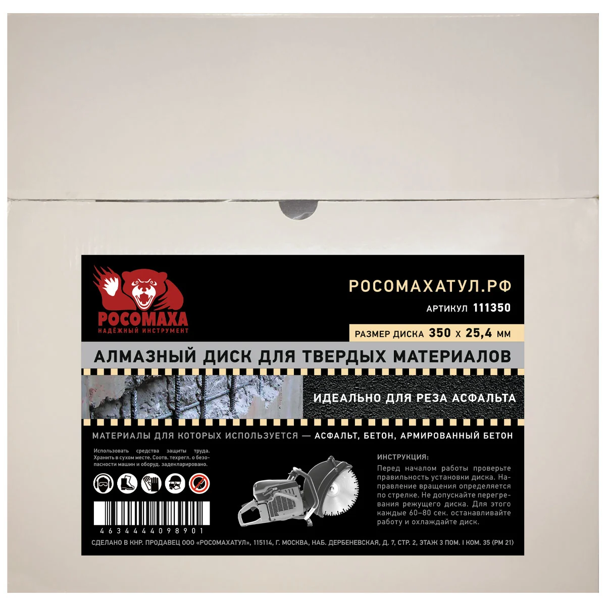 Диск отрезной алмазный по асфальту, бетону и камню 350*3,0 мм "РОСОМАХА" [1 шт]