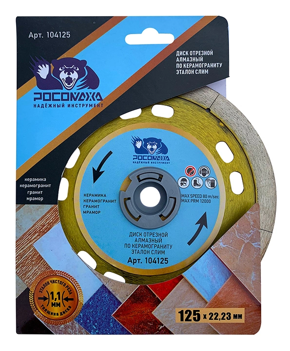 Диск отрезной алмазный по керамограниту, тонкий ЭТАЛОН СЛИМ 125*1,1 мм "РОСОМАХА" [1 шт]