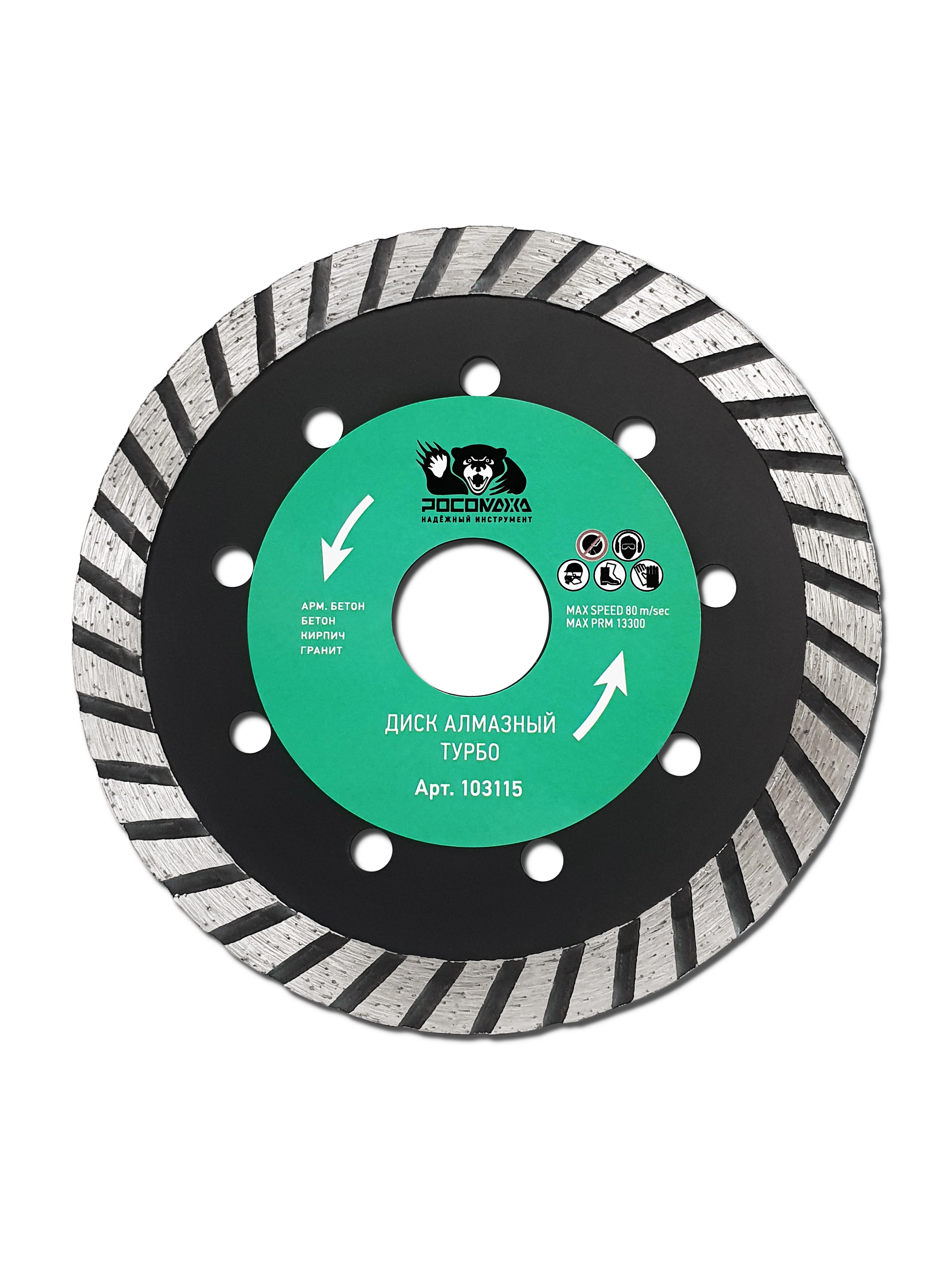 Турбированный диск "РОСОМАХА" СЕРИИ 103 предназначен для реза бетона, армированного бетона и камня. Благодаря специальной структуре и увеличенной рабочей части диск легко удаляет шлам + хорошо охлаждается, благодаря чему достигается аккуратный рез при работе.
