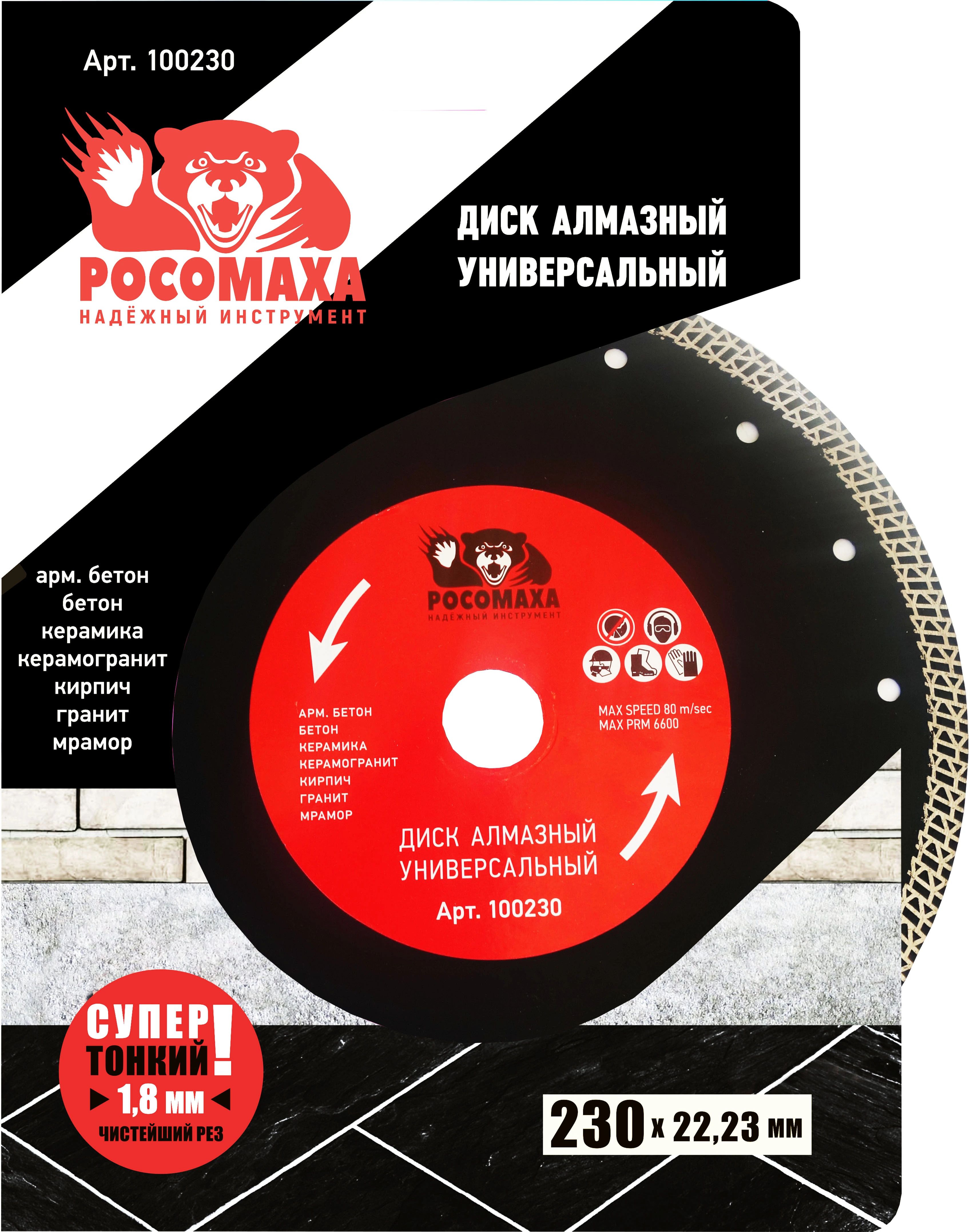 Диск отрезной алмазный универсальный, ультратонкий S-тип 230*1,8 мм "РОСОМАХА" [1 шт]
