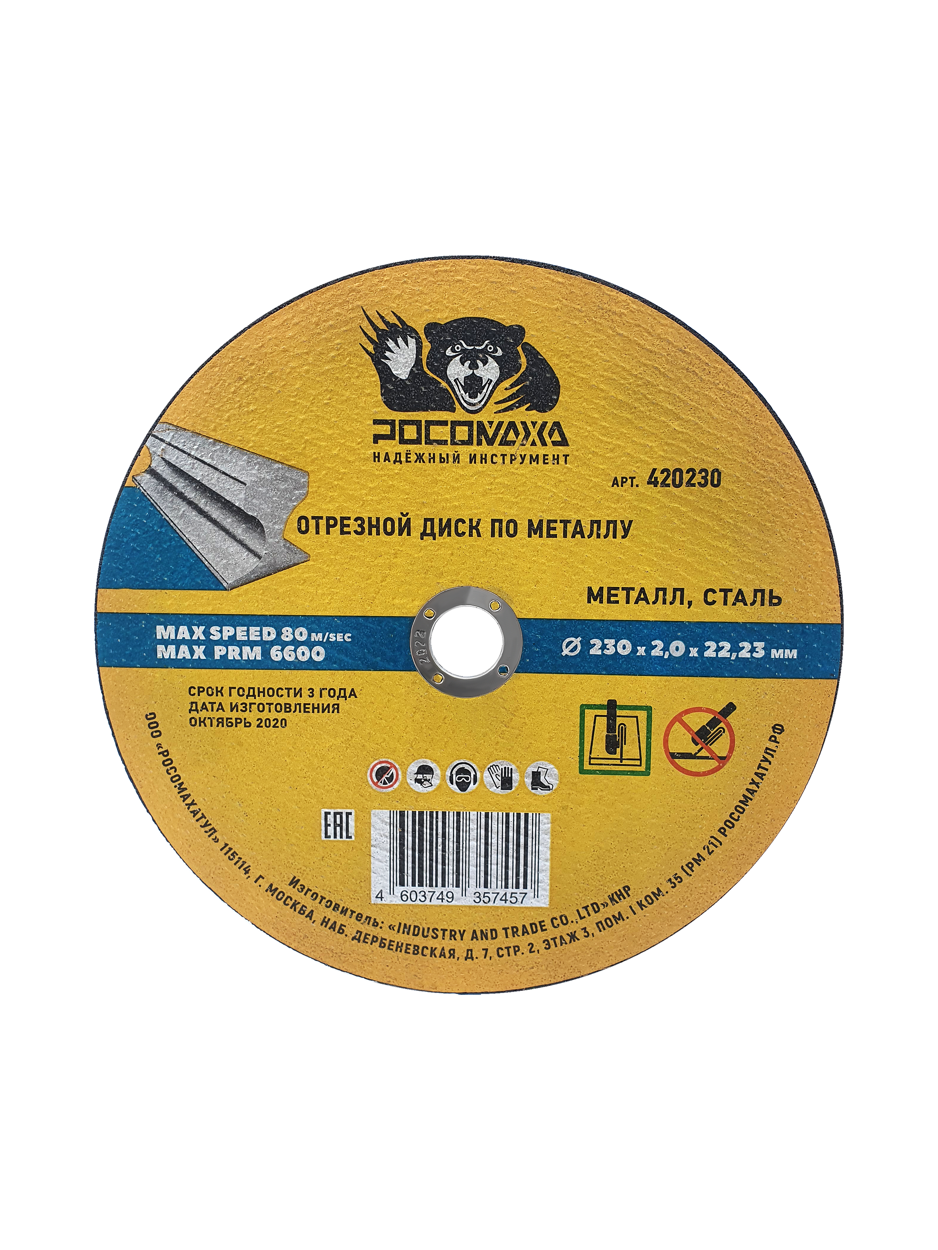 Диск отрезной по металлу универсальный 230*2,0 мм "РОСОМАХА" [5 шт]