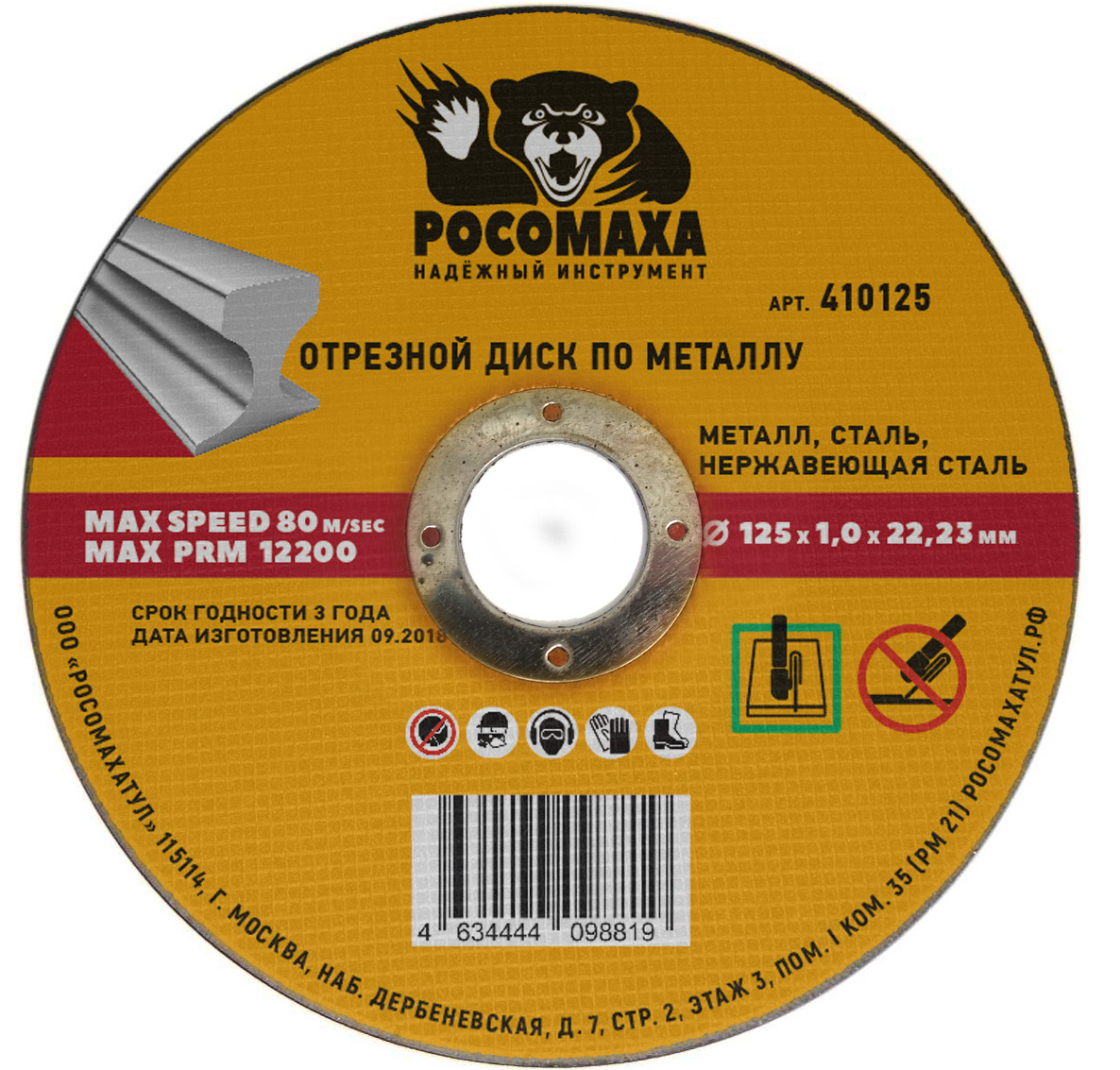 Диск отрезной по нержавеющей стали и металлу 125*1,0 мм "РОСОМАХА" [25 шт]