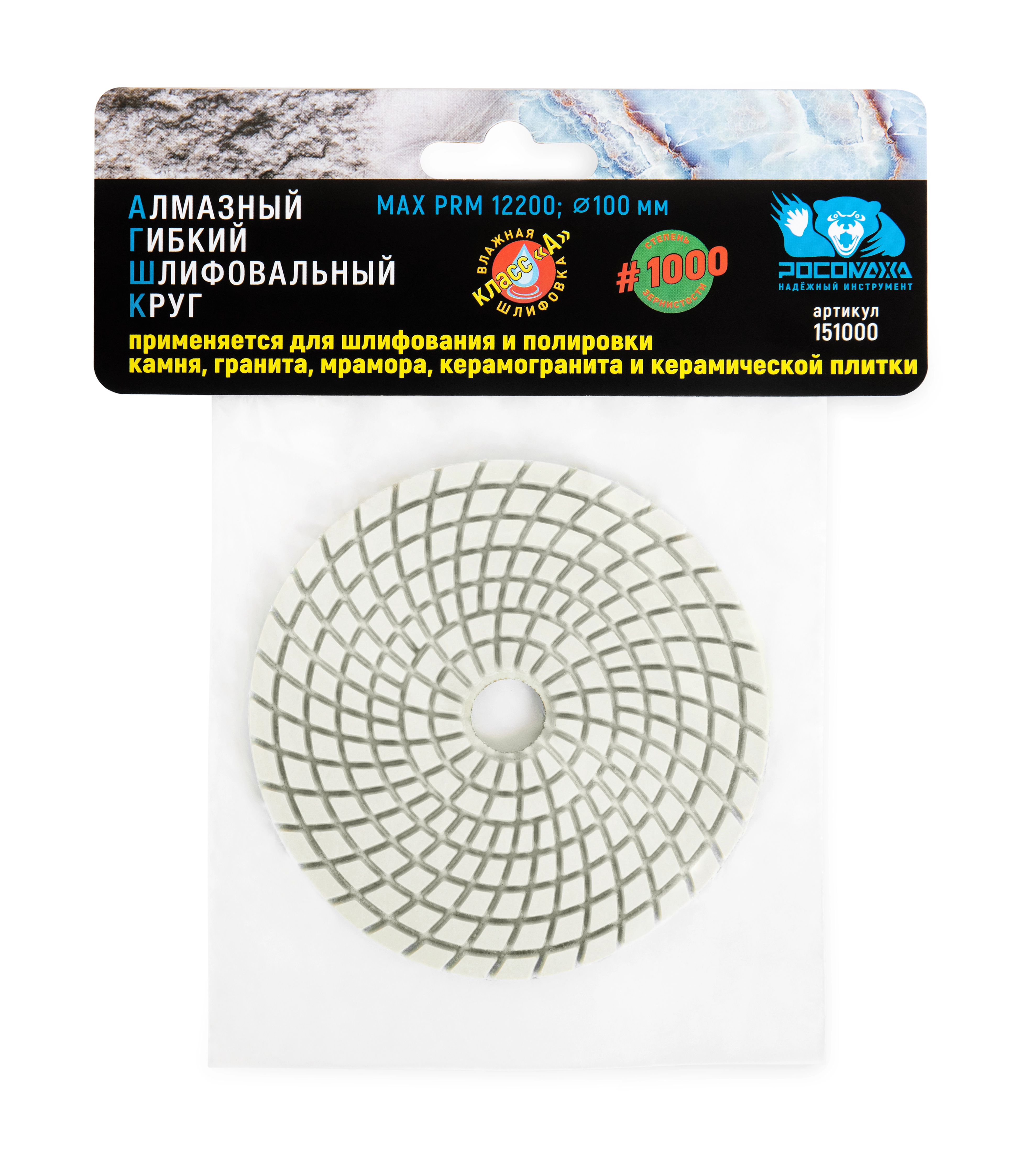 Алмазный гибкий шлифовальный круг 100 мм мокрая шлифовка зерно 1000 "РОСОМАХА" [1 шт]
