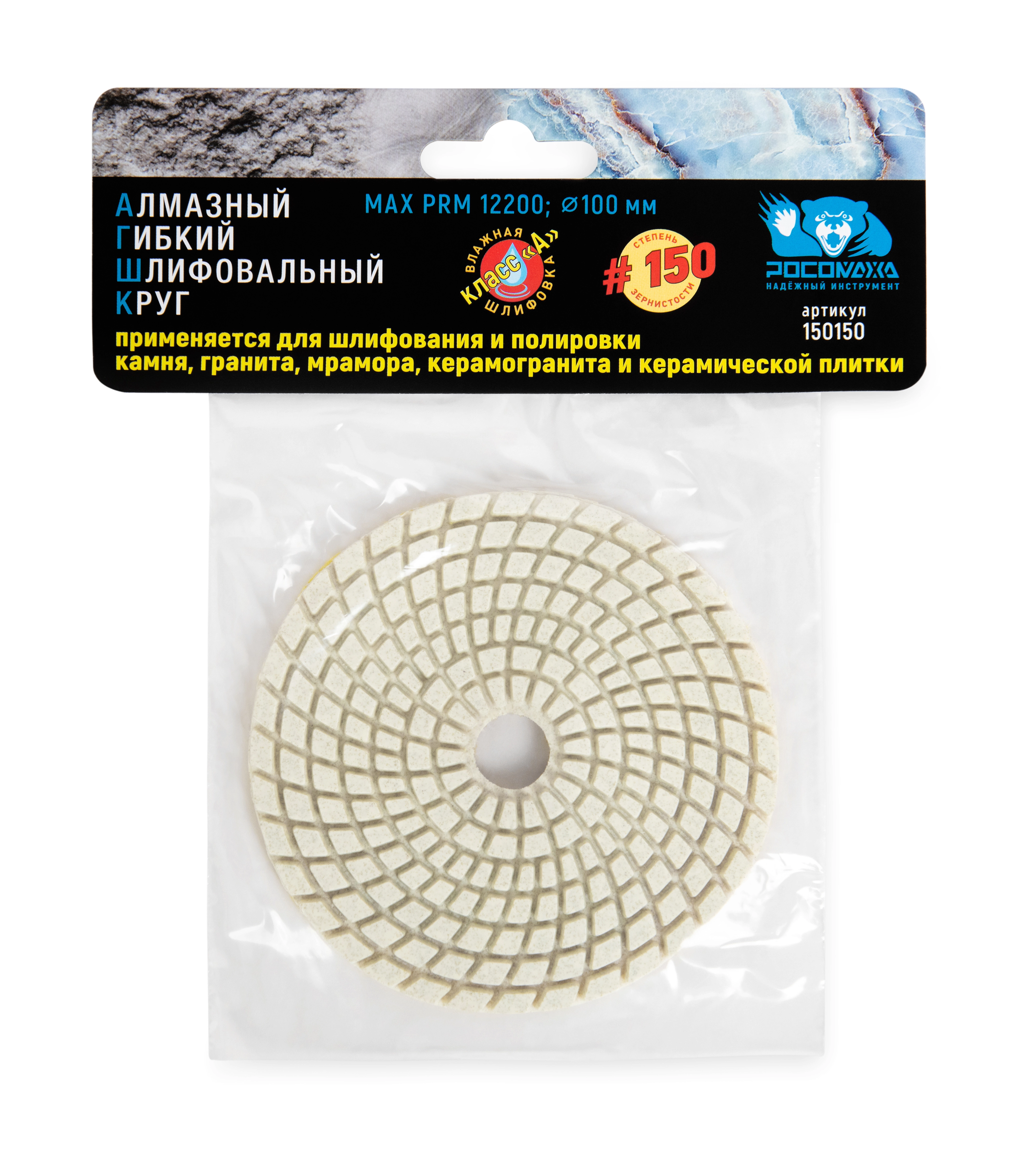 Алмазный гибкий шлифовальный круг 100 мм мокрая шлифовка зерно 150 "РОСОМАХА" [1 шт]