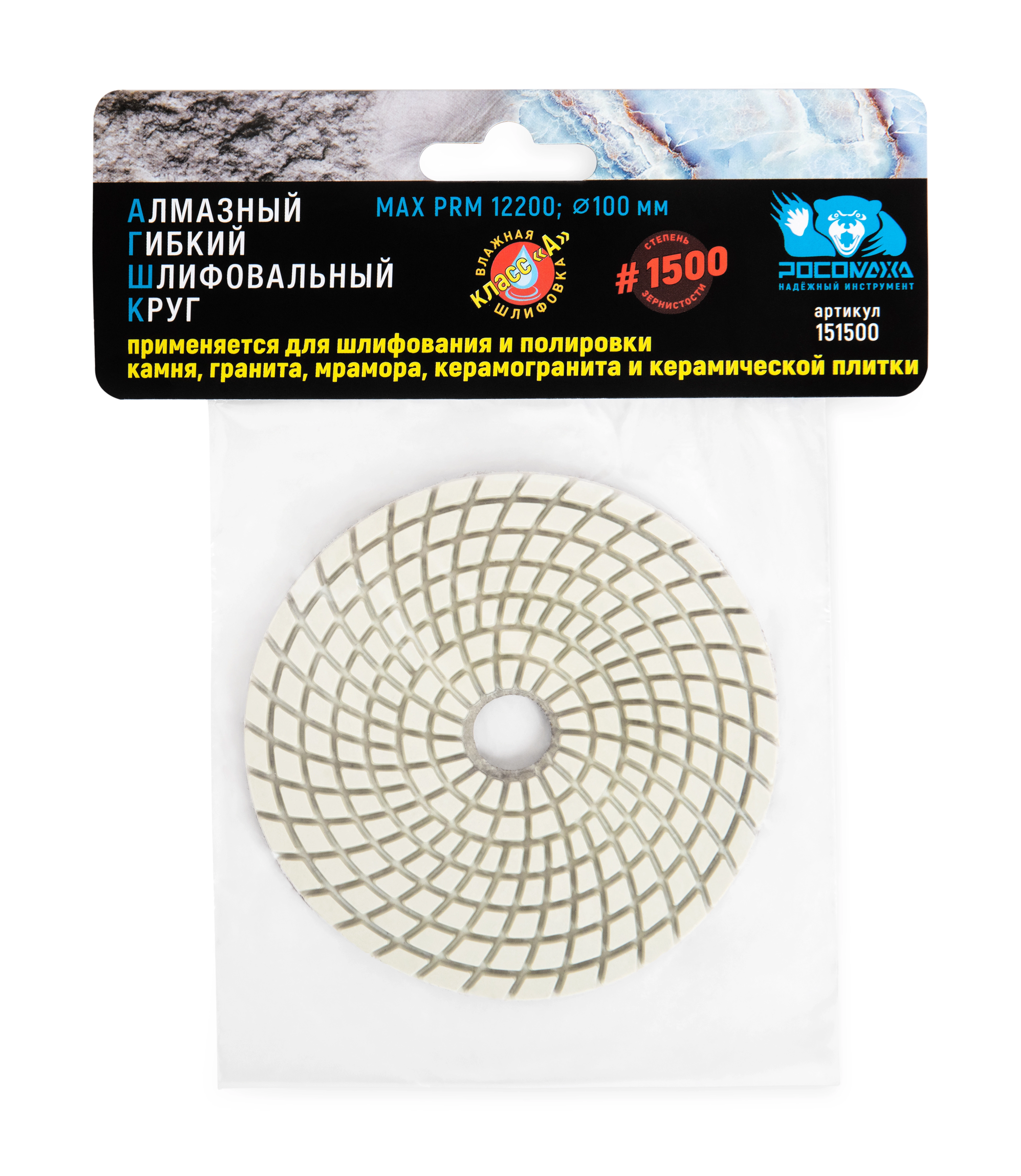 Алмазный гибкий шлифовальный круг 100 мм мокрая шлифовка зерно 1500 "РОСОМАХА" [1 шт]