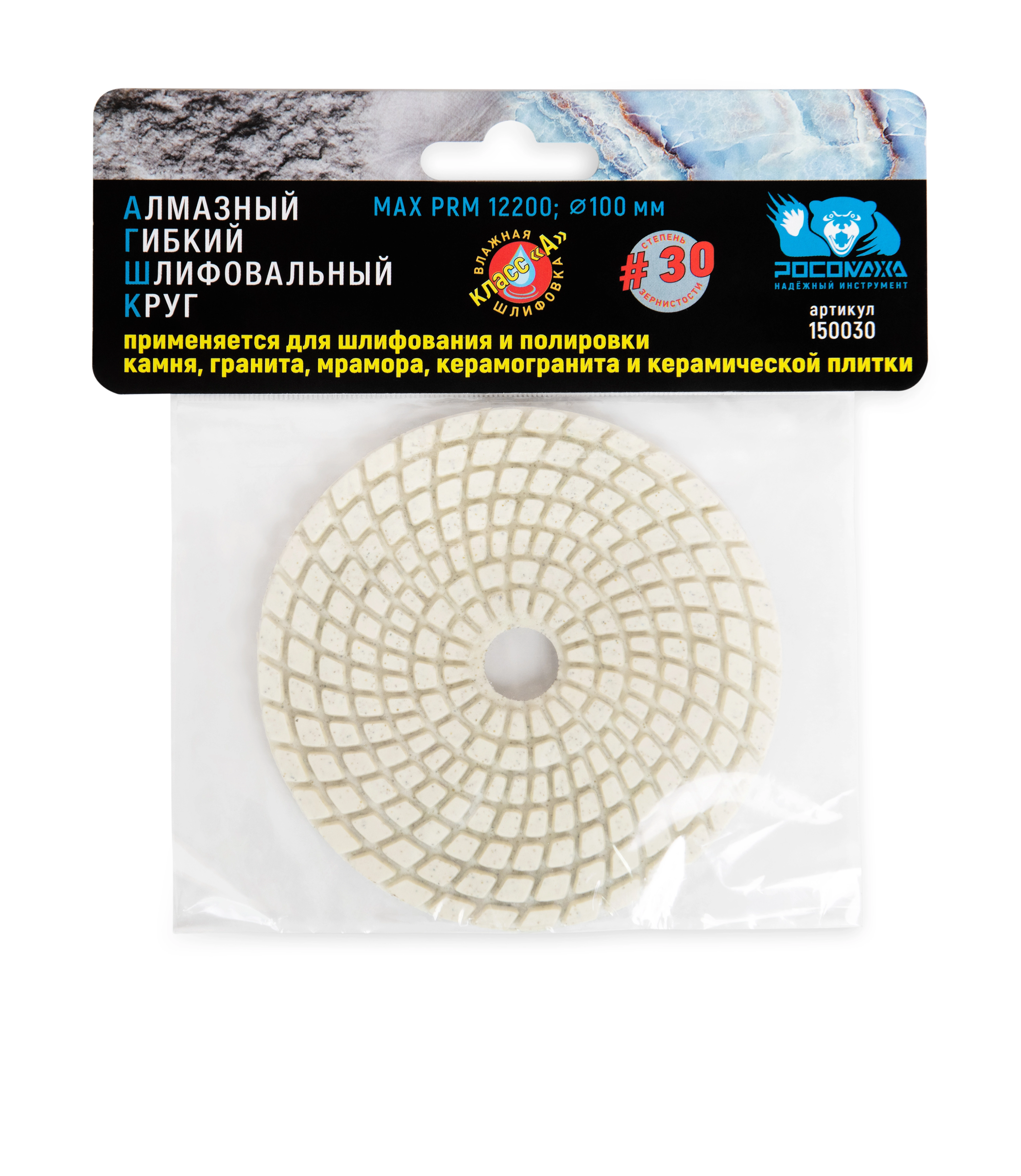 Алмазный гибкий шлифовальный круг 100 мм мокрая шлифовка зерно 30 "РОСОМАХА" [1 шт]