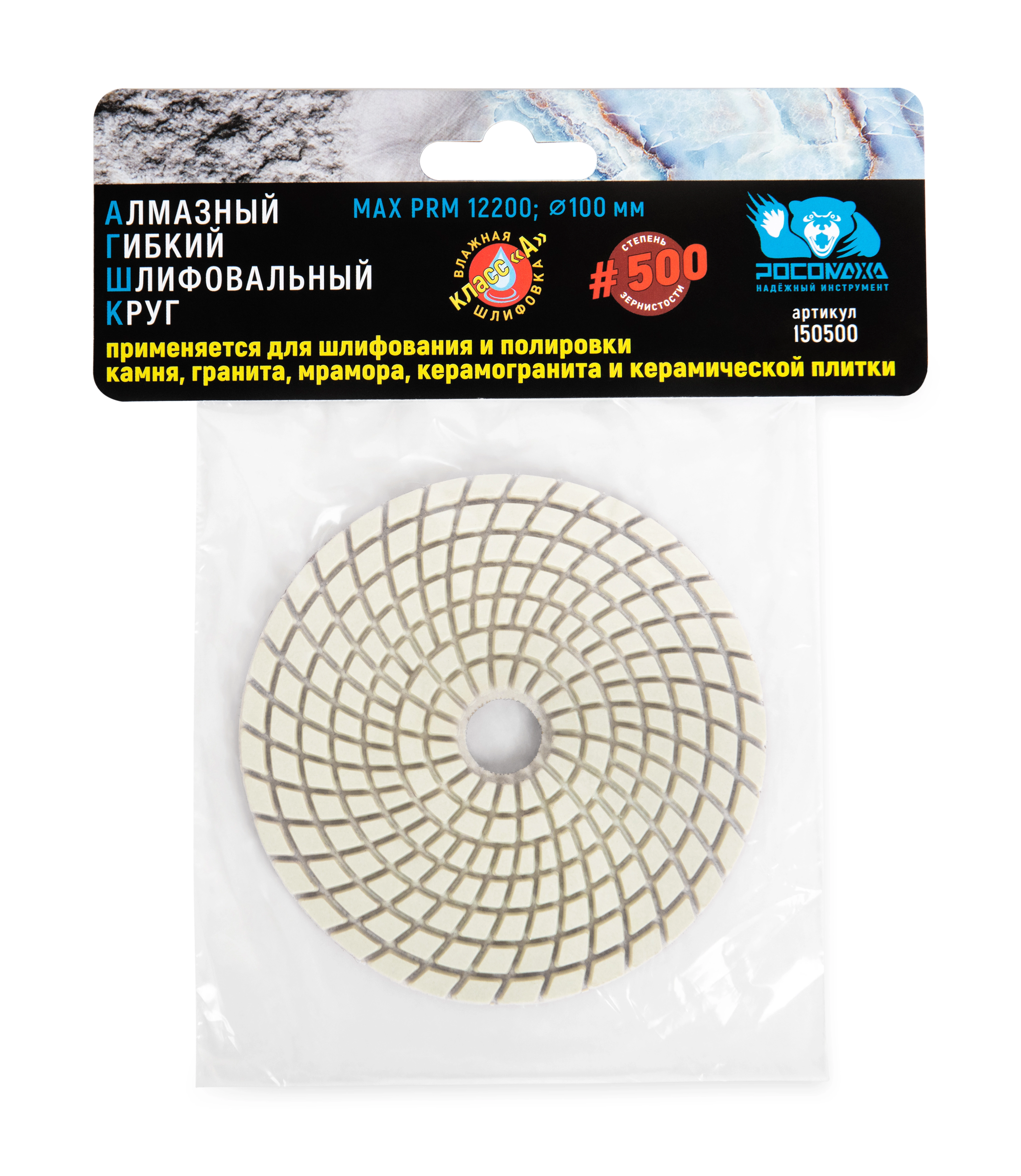 Алмазный гибкий шлифовальный круг 100 мм мокрая шлифовка зерно 500 "РОСОМАХА" [1 шт]