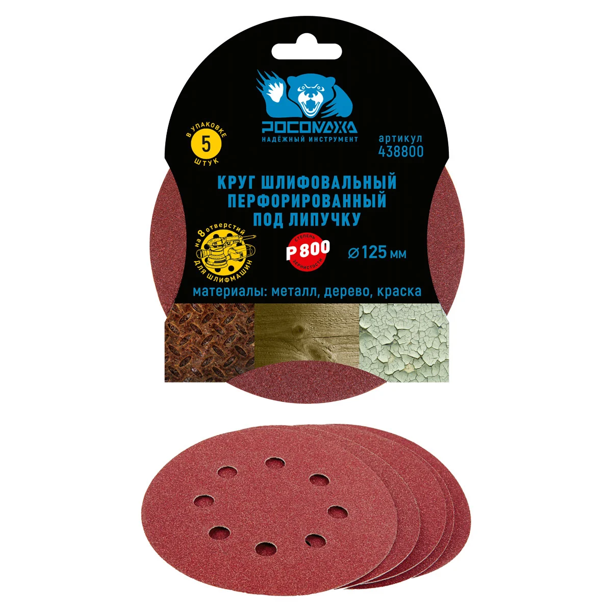 Круг шлифовальный, перфорированный 8 отверстий под липучку 125 мм зерно 800 "РОСОМАХА" [5 шт]