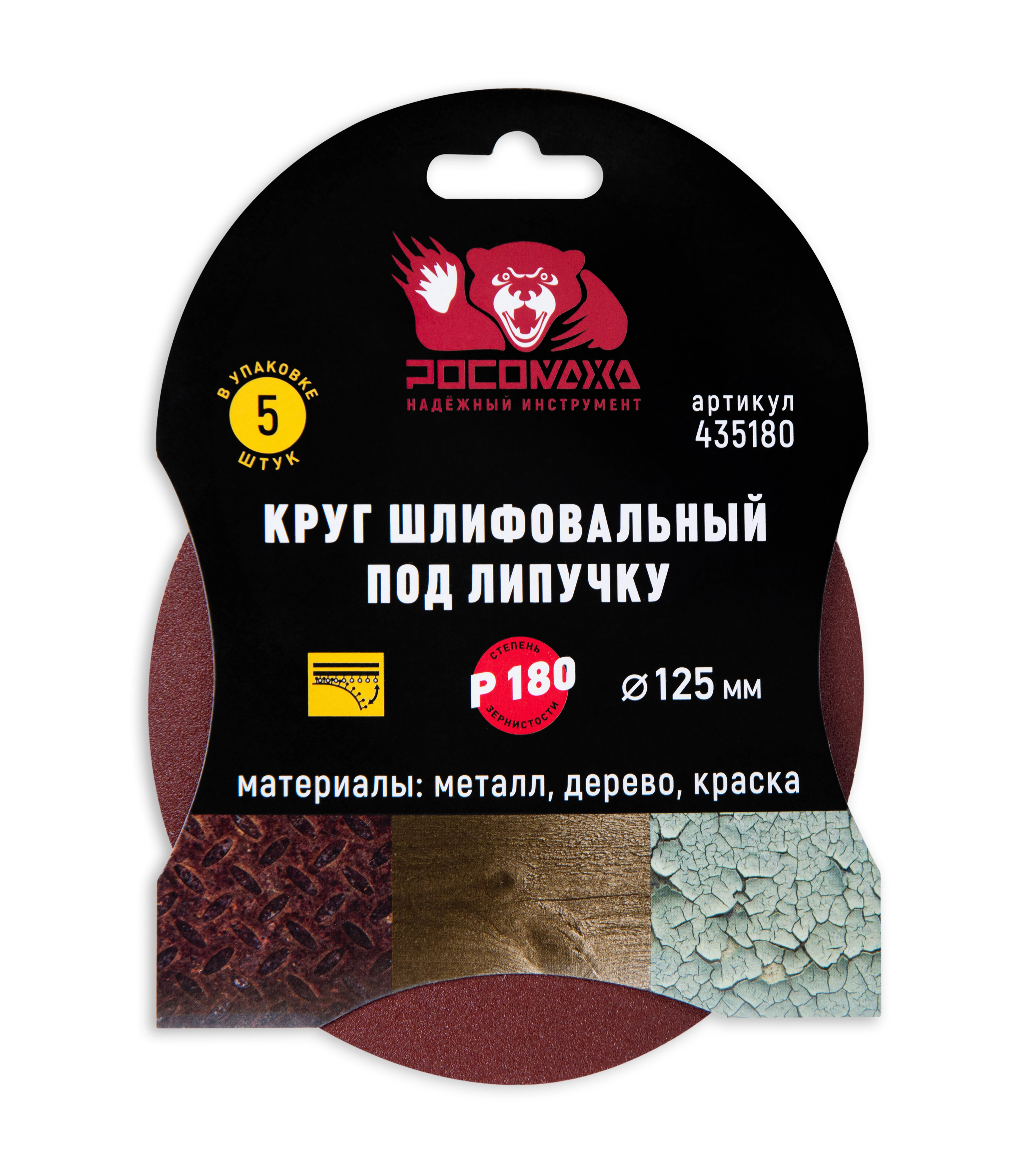 Круг шлифовальный под липучку 125 мм зерно 180 "РОСОМАХА" [5 шт]