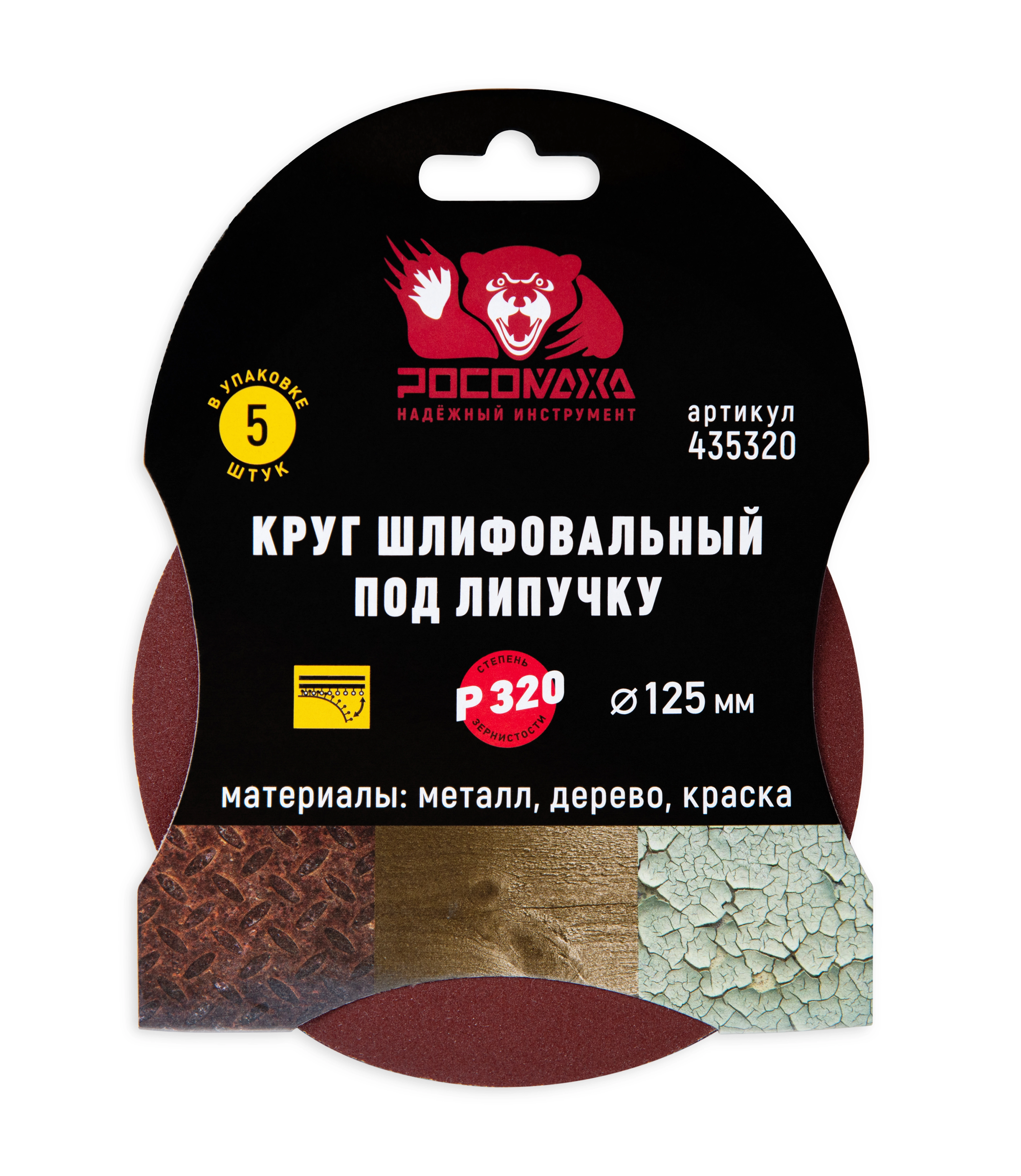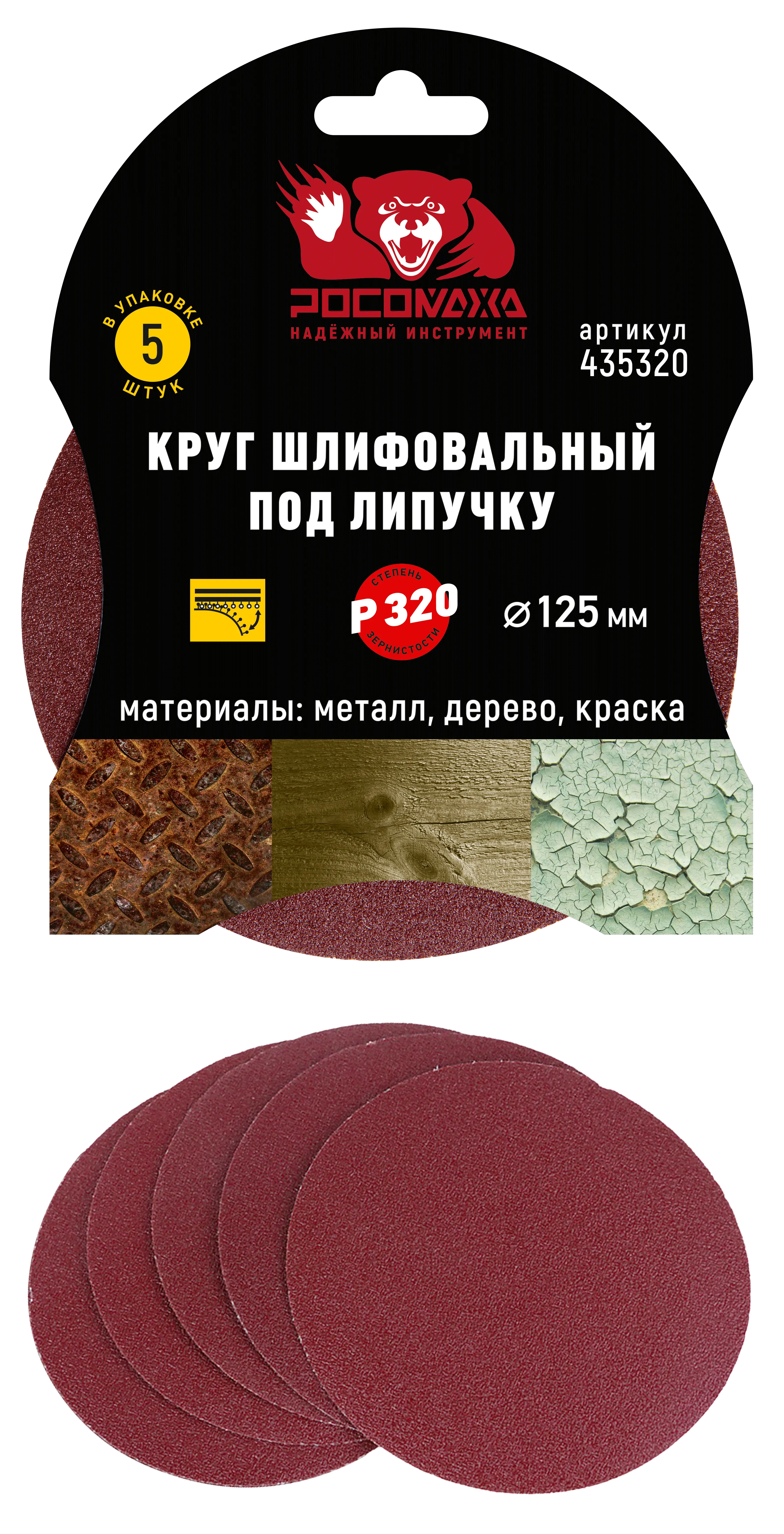 Круг шлифовальный под липучку 125 мм зерно 320 "РОСОМАХА" [5 шт]