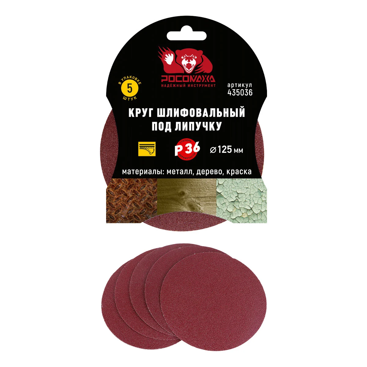 Круг шлифовальный под липучку 125 мм зерно 36 "РОСОМАХА" [5 шт]