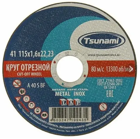 Круг отрезной по металлу TSUNAMI ГОСТ 21963-2002 22х1,6х230 [50 шт]