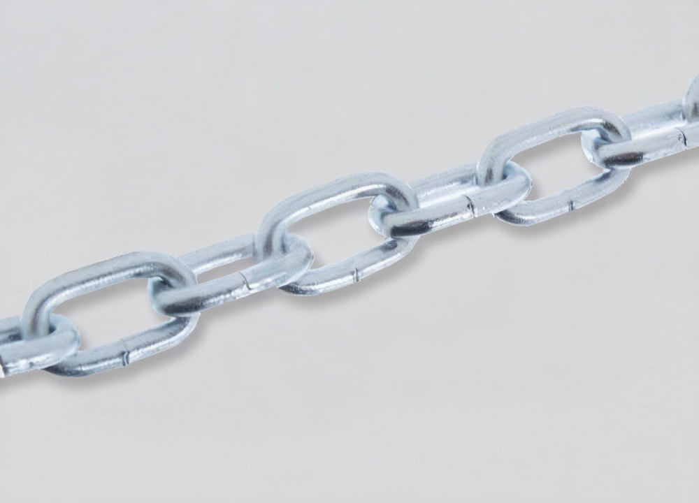 Цепь DIN 766 - цепь с коротким звеном состоит из звеньев, одинаковых по размеру, соединенных последовательно. Цепь изготавливается из оцинкованной стали с короткими звеньями. Служит для подвесок, растяжек, используется при грузоподъемных работах, входит в состав разнообразных грузоподъемных устройств, ручных талей, подъемных кранов. Короткозвенные цепи используются в быту, промышленности, машиностроении, сельском, лесном хозяйстве.
