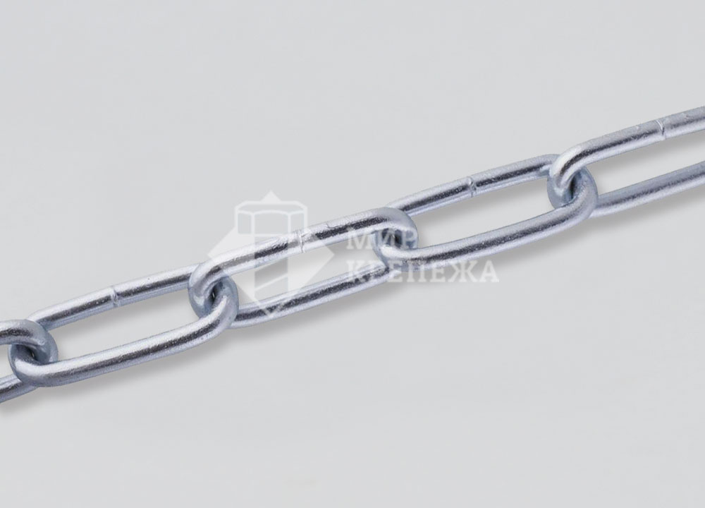 Цепь DIN 763 - цепь с длинным звеном производится из оцинкованной стали. Звенья цепи имеют удлиненную форму и выглядят как вытянутый овал. Цепь создается путем сварки отдельных звеньев. Длиннозвенная цепь легче короткозвенной за счет длины звеньев. Цепь DIN 763 длиннозвенная имеет общее назначение и может быть использована для широкого фронта работ. Изделие предназначено для закрепления груза при перевозке, может выступать в роли растяжки и подвешивания нетяжелых грузов и быть использовано для различных бытовых нужд.