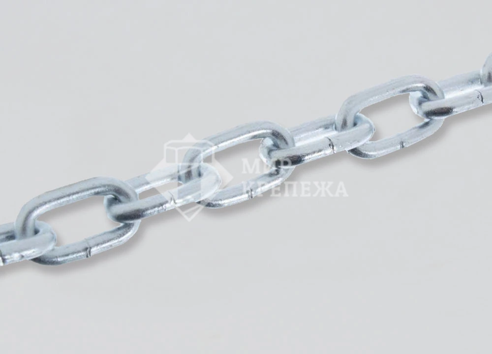 Цепь DIN 766 - цепь с коротким звеном состоит из звеньев, одинаковых по размеру, соединенных последовательно. Цепь изготавливается из оцинкованной стали с короткими звеньями. Служит для подвесок, растяжек, используется при грузоподъемных работах, входит в состав разнообразных грузоподъемных устройств, ручных талей, подъемных кранов. Короткозвенные цепи используются в быту, промышленности, машиностроении, сельском, лесном хозяйстве.