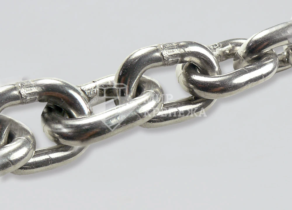 Цепь DIN 766 – цепь с коротким звеном состоит из звеньев, одинаковых по размеру, соединенных последовательно. Цепь с коротким звеном служит для подвесок, растяжек, используется при грузоподъемных работах, входит в состав разнообразных грузоподъемных устройств, ручных талей, подъемных кранов. Используется в быту, промышленности, машиностроении, сельском, лесном хозяйстве. Цепь с коротким звеном изготовлена из стали нержавеющей А2 или А4, характеризуется повышенной прочностью, обладает антикоррозионными свойствами.