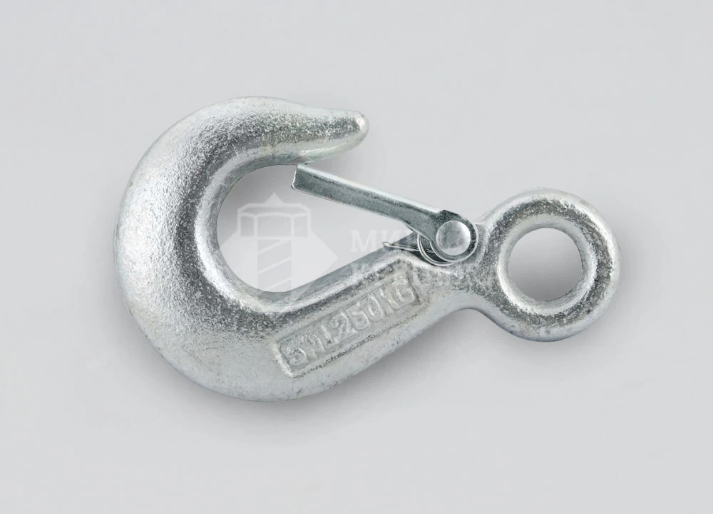 Крюк с предохранителем DIN689 - крюк с защелкой рекомендуется применять в различных грузоподъемных устройствах: от ручных талей до подъемных кранов, для подъема и перемещения грузов, деталей и элементов конструкций. Крюк имеет проушину для подвешивания троса, каната или цепи.