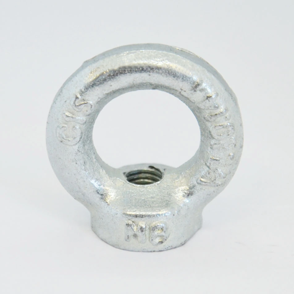 Рым-гайка DIN 582 - стальное кольцо, в основании которого имеется отверстие с нарезанной резьбой. Используется для крепления цепей и тросов и для создания различных растяжек. При такелажных работах рым-гайка может использоваться для подъема грузов. Размеры рым-гаек обозначаются в соответствии с размером метрической резьбы основания. Рым-гайки устанавливаются в закладные болты, либо, при сквозном монтаже, накручиваются на резьбовые шпильки. Изготавливается из углеродистой стали. После производства деталь проходит оцинковку.