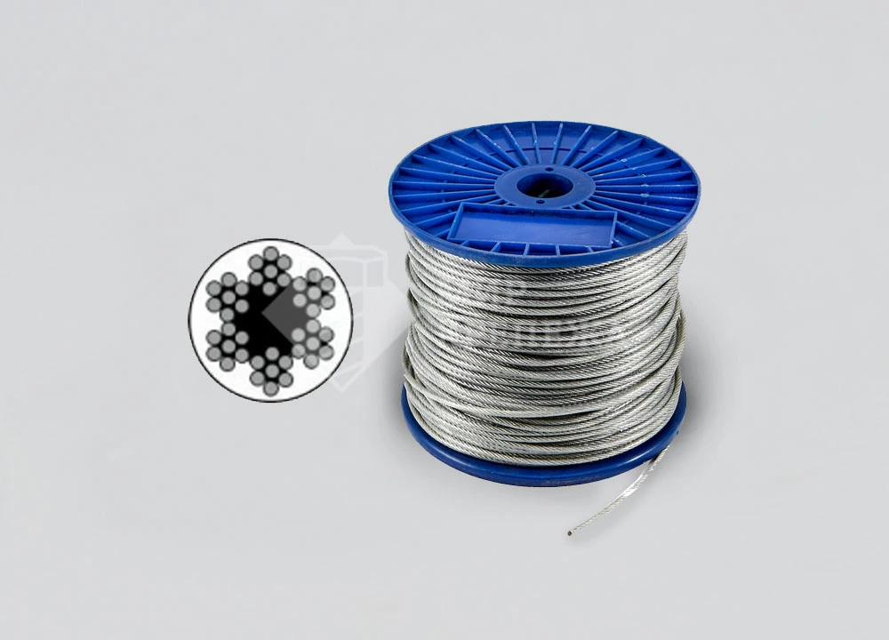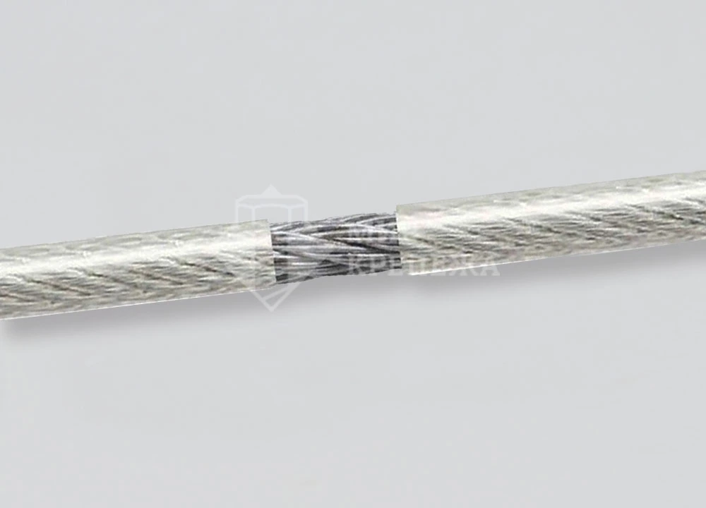 Трос PVC DIN 3055 - применяется при монтажных и строительных работах для установки стационарных подвесных конструкций, страховочных систем. Данный тип троса не рекомендуется использовать в грузоподъемных целях. Трос производится из стальной холоднокатаной проволоки. Проволка оцинкована. Поверх стального троса наносится оболочка из ПВХ. Оболочка ПВХ длительный срок защищает трос от коррозии при применении его на улице. За счет ПВХ оболочки трос DIN 3055 часто используют в бытовых целях, в декоративных и конструктивных изделиях.